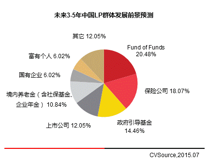 對(duì)中國(guó)未來(lái)LP群體發(fā)展的前景上來(lái)看,引導(dǎo)基金普遍認(rèn)為未來(lái)發(fā)展前景最好的分別為FOFs、險(xiǎn)資和政府引導(dǎo)基金,F(xiàn)OFs因其專(zhuān)業(yè)的基金篩選能力和對(duì)市場(chǎng)的精準(zhǔn)把握,其毫無(wú)疑問(wèn)的成為發(fā)展前景最佳的LP;今年隨著險(xiǎn)資放開(kāi)對(duì)VC的投資,因其龐大的資產(chǎn)配置規(guī)模和嚴(yán)格的基金篩選標(biāo)準(zhǔn),也將成為國(guó)內(nèi)人民幣基金的重要LP。